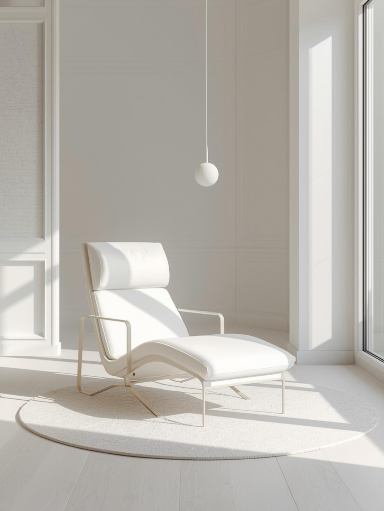 Minimalist white lounge chairs are ideal for clean, peaceful interiors. Their crisp look makes rooms feel larger, brighter, and more polished. Choose smooth upholstery, simple lines, and subtle curves for a modern aesthetic that feels effortless rather than cold.
