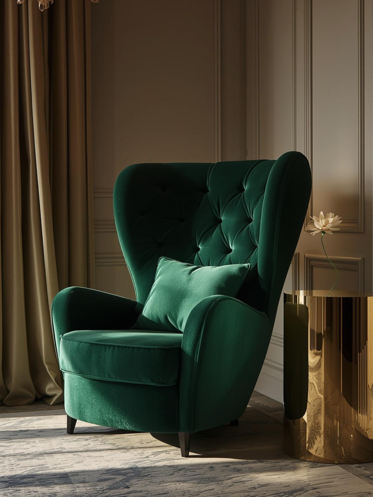 Use one velvet chair as an accent piece rather than overcrowding the room. Pair it with brass decor, modern art, and layered lighting for a sophisticated setup. If you love glamorous interiors with cozy comfort, velvet lounge chairs are a top trend to watch.