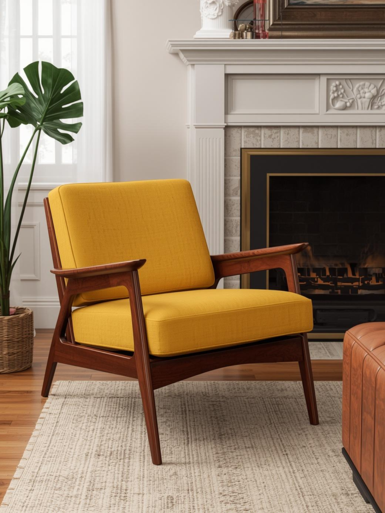 Mid-century modern lounge chairs continue trending because they blend vintage character with timeless lines. Tapered legs, walnut wood frames, and tailored cushions create a polished style that works in many homes. They feel elegant without being overly formal.