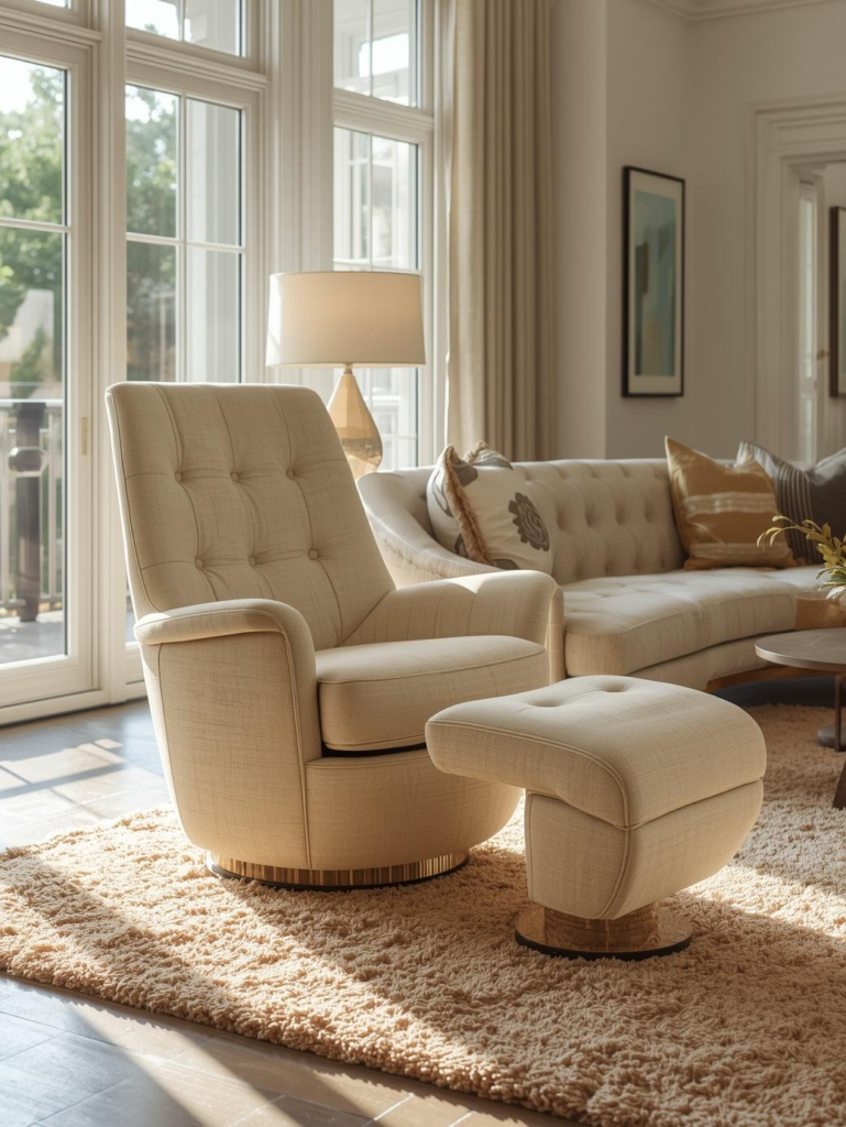Swivel lounge chairs combine practicality with modern style, making them ideal for open-concept homes. Their rotating base allows easy movement, helping you face conversations, TV areas, or windows without moving furniture. This makes them especially useful in multifunctional living rooms.