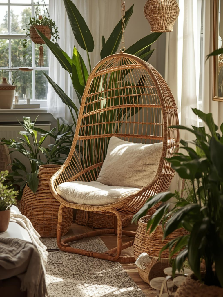 Pair a rattan chair with indoor plants, linen curtains, and neutral textiles for a calming atmosphere. Add a soft cushion for comfort and everyday usability. In 2026, natural materials remain highly popular as people seek grounded and inviting spaces.