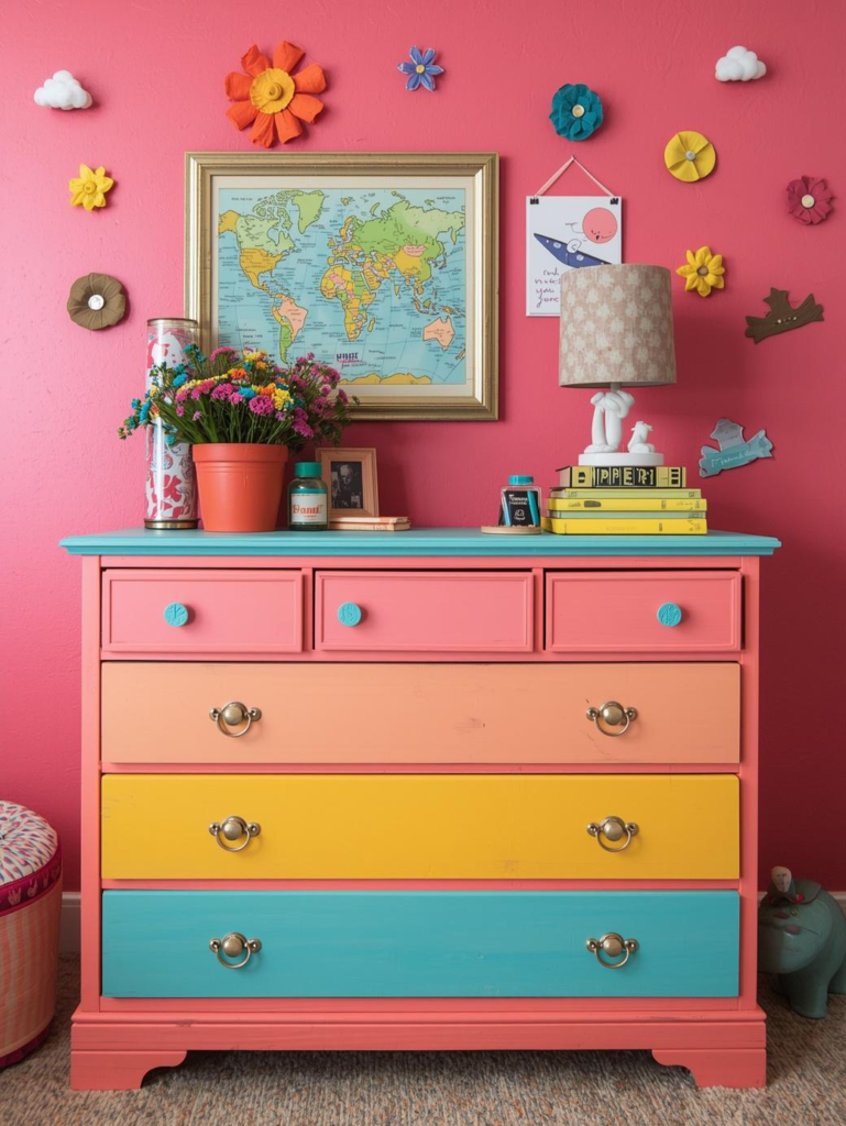 Painting furniture in bold colors is an easy way to refresh a kids’ room. A bright dresser or bedside table can become a standout piece that adds character and charm.