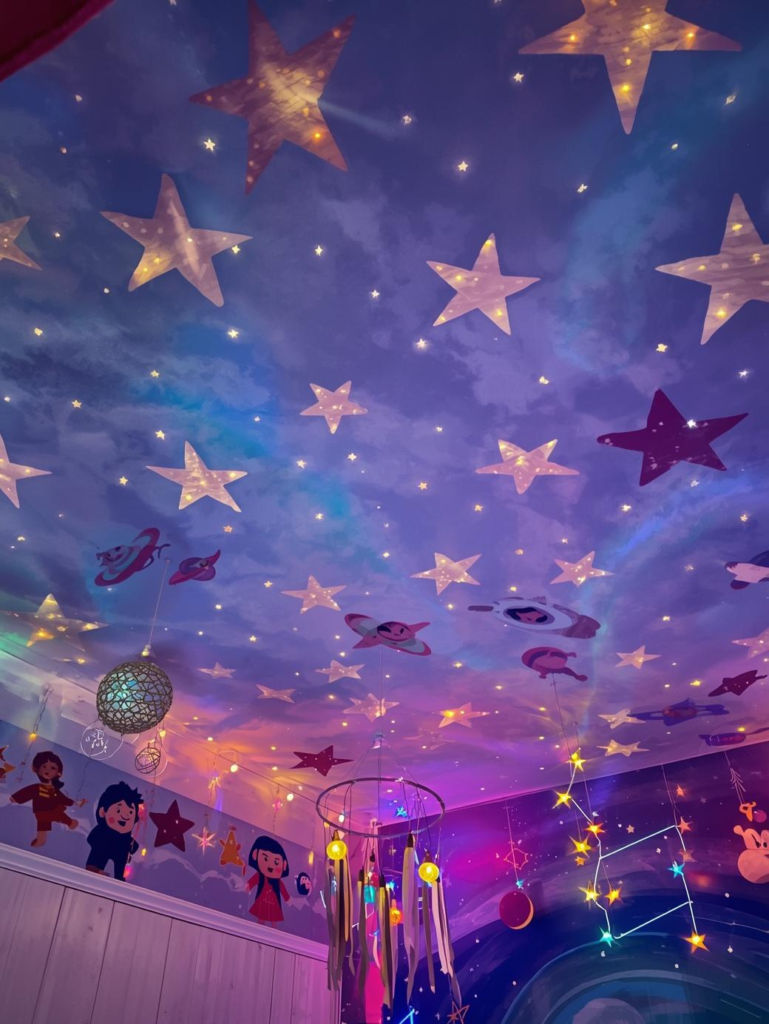 From painted stars to soft pastel shades, this idea adds depth and interest. It transforms the room into a more immersive and imaginative space.