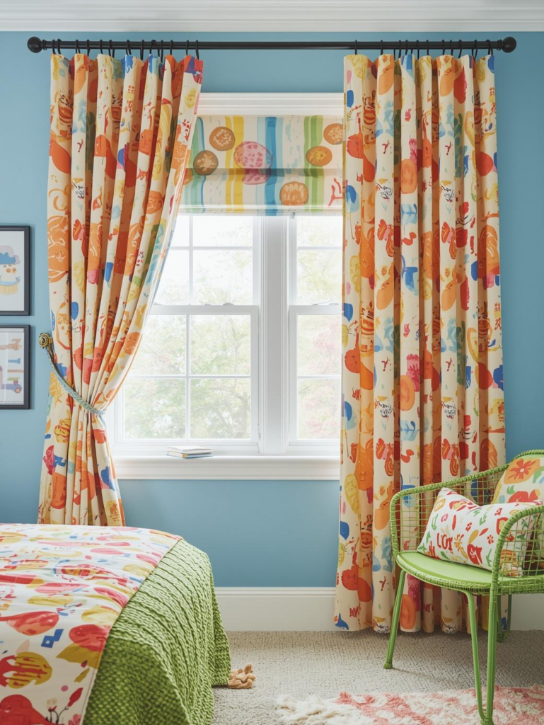 Colorful curtains can instantly brighten up a kids’ room. Choose fun patterns or bold shades to add a cheerful touch while controlling natural light.