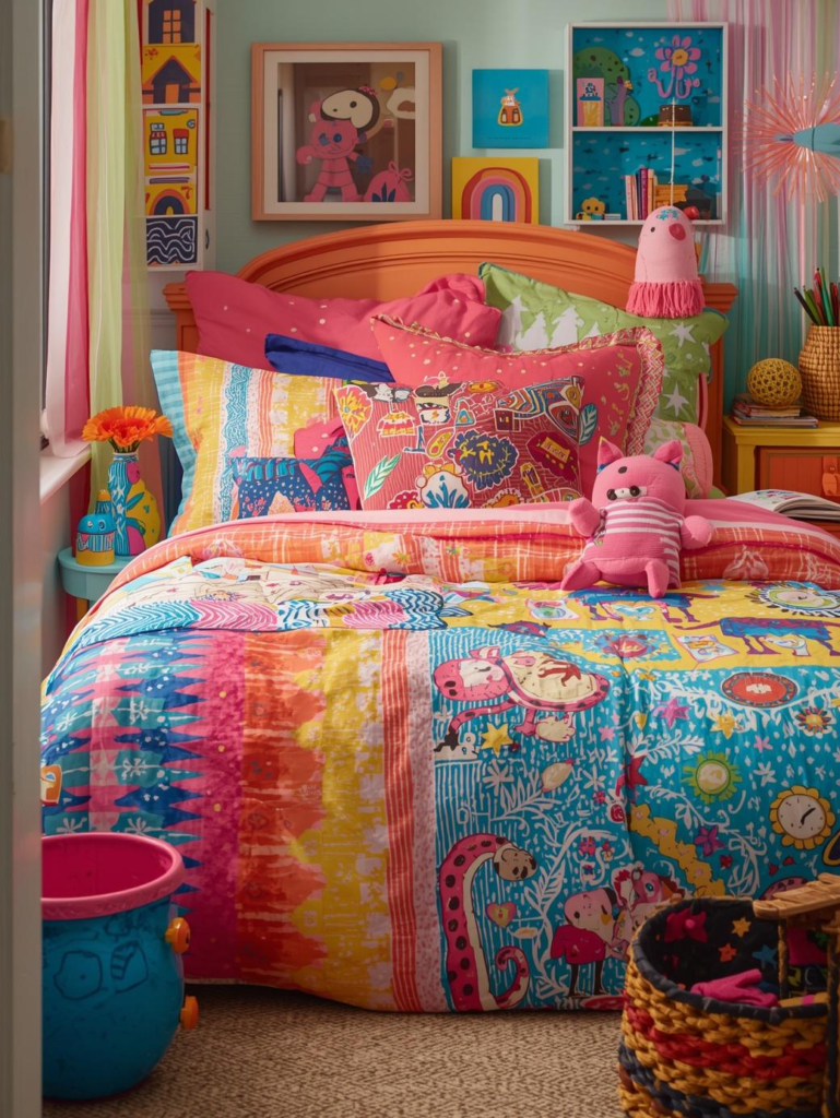 Mixing different colors, patterns, and textures creates a lively and unique kids’ room. This approach allows for creativity and personalization.