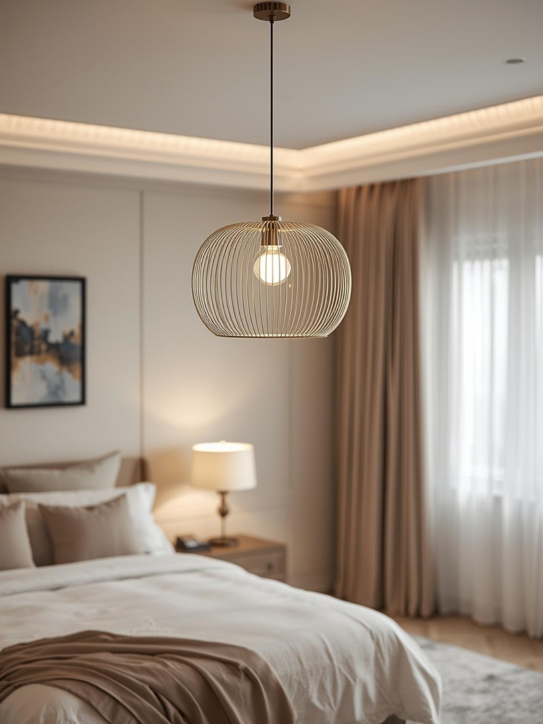 15. Modern Neutral Bedroom with Statement Lighting