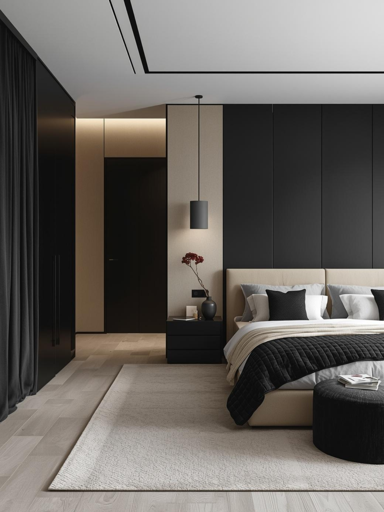 4. Modern Minimal Black & Beige Bedroom