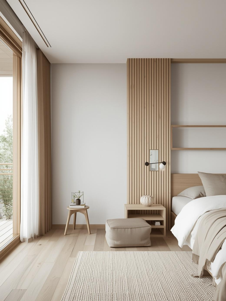 Japandi design blends Japanese simplicity with Scandinavian warmth. Neutral colors, natural wood, and clean lines create a peaceful and balanced bedroom environment.