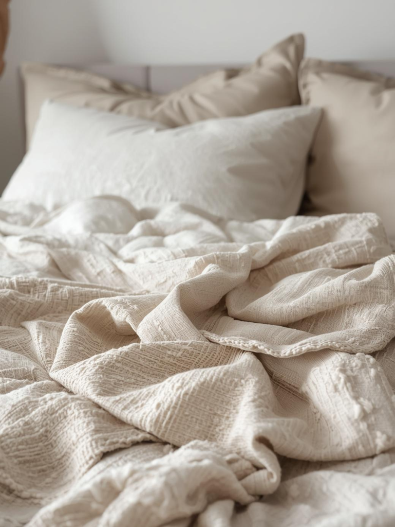 11. Textured Neutral Layered Bedroom