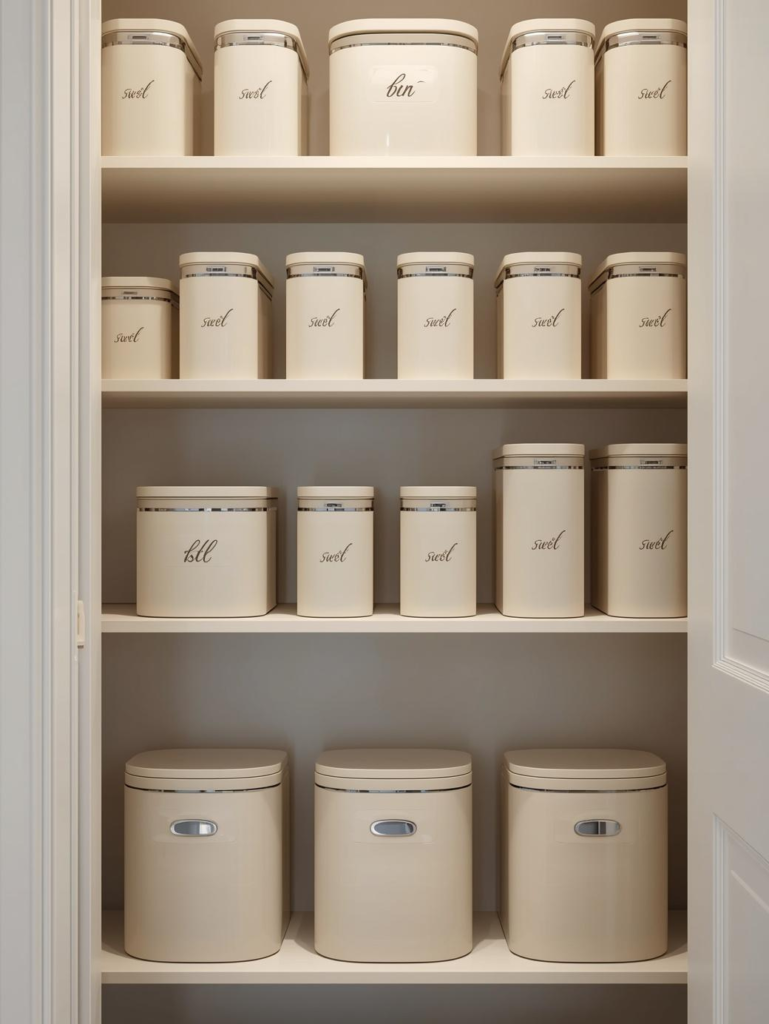 Opt for transparent or neutral-colored bins for a cohesive look. Label each bin to maintain order. This idea ensures that every inch of your pantry is used efficiently without creating visual clutter.