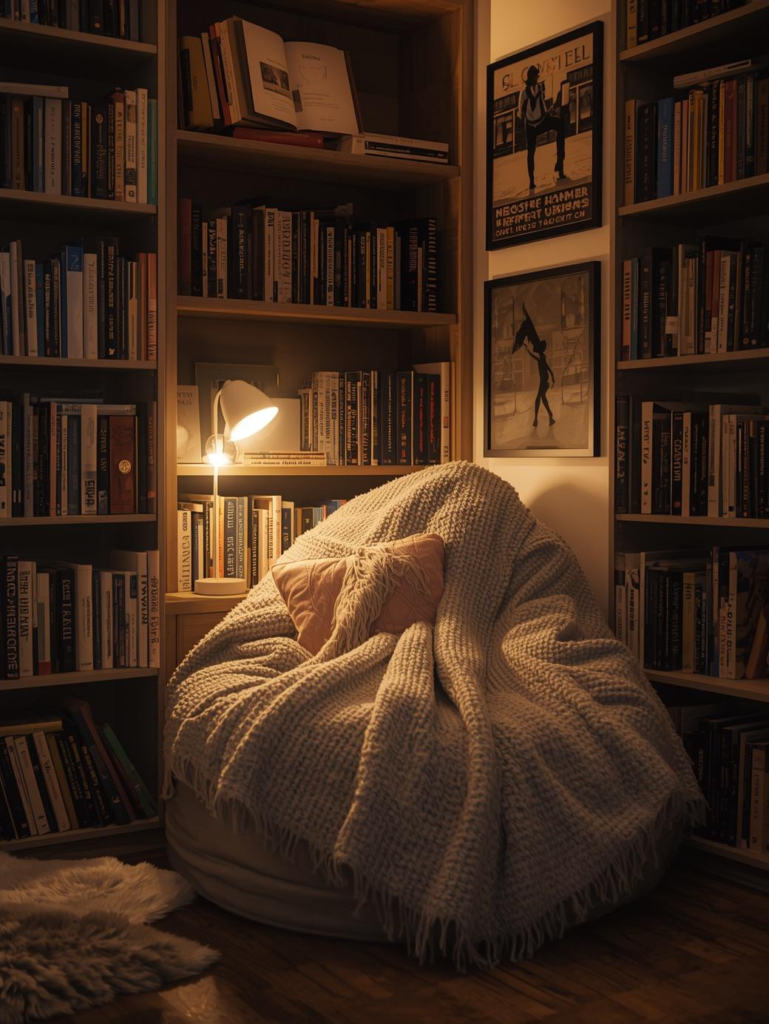 Transform an unused bedroom corner into a relaxing reading nook with a bean bag chair, floor cushion, or hanging chair. Add a small side table for books and drinks, then place a warm lamp nearby. This cozy corner creates the perfect escape for reading, journaling, or relaxing after school.