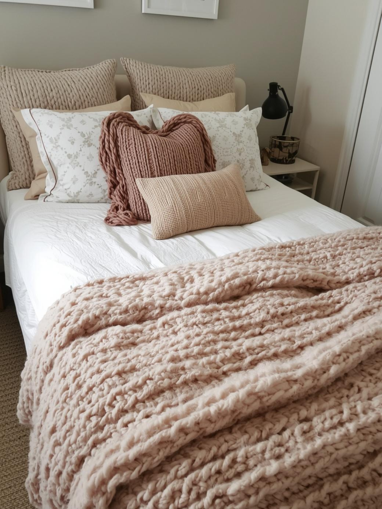 Throw pillows can completely change the look of a bedroom, and making custom covers is a fun DIY project. Use fabric in calming shades like cream, sage green, blush pink, or navy blue. Sew simple envelope-style pillow covers or use fabric glue for a no-sew option that beginners can easily complete.