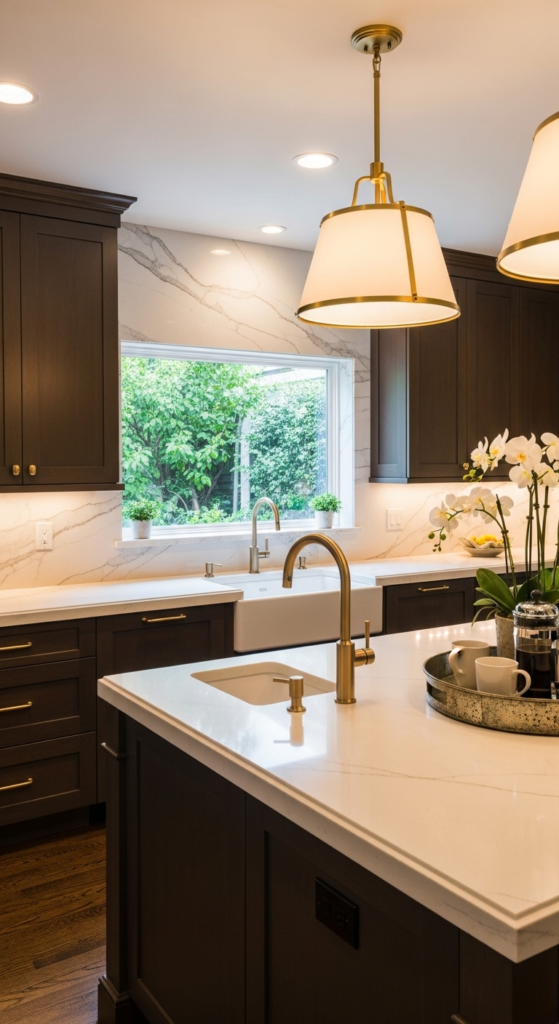 Dark espresso cabinets are returning in 2026 with updated styling that feels fresh rather than heavy. Their rich tone creates depth and contrast, especially when paired with bright countertops and walls. They instantly add drama.