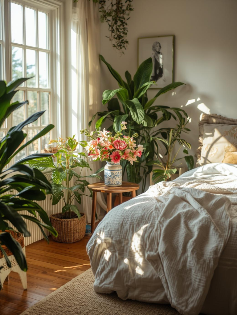 Adding plants or fresh flowers brings life into the room. Greenery creates a refreshing and calming atmosphere that enhances the overall aesthetic. Even a small plant on the bedside table can make a big impact.