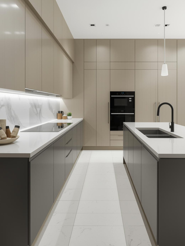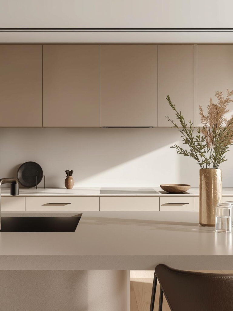 Neutral kitchen counters provide a timeless foundation that adapts easily to changing decor trends. Shades like cream, taupe, and soft gray create a calming and versatile space.
