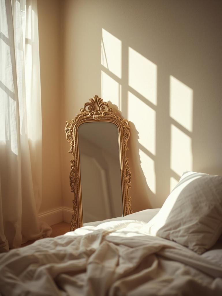 Mirrors help reflect light and make cozy bedrooms feel brighter and more spacious.