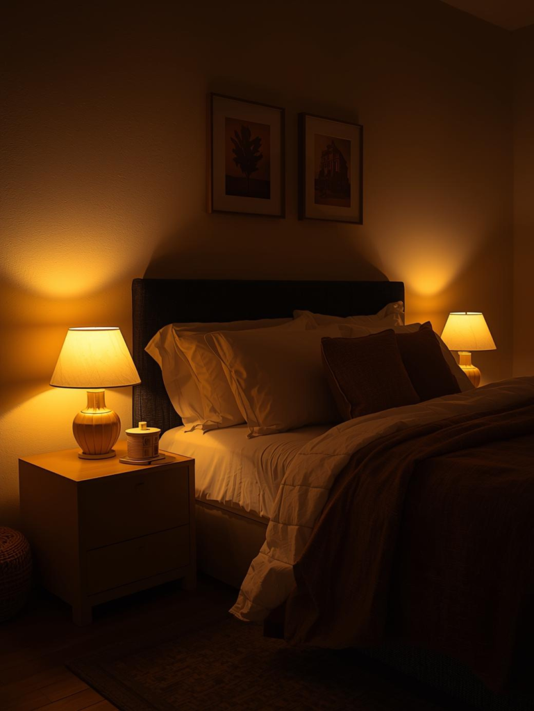 Warm lighting plays a major role in transforming a bedroom into a cozy retreat. Soft yellow or warm white lights create a relaxing atmosphere that helps you unwind at the end of the day. Lamps placed near the bed provide gentle illumination without harsh shadows, making the room feel calm and comfortable.
