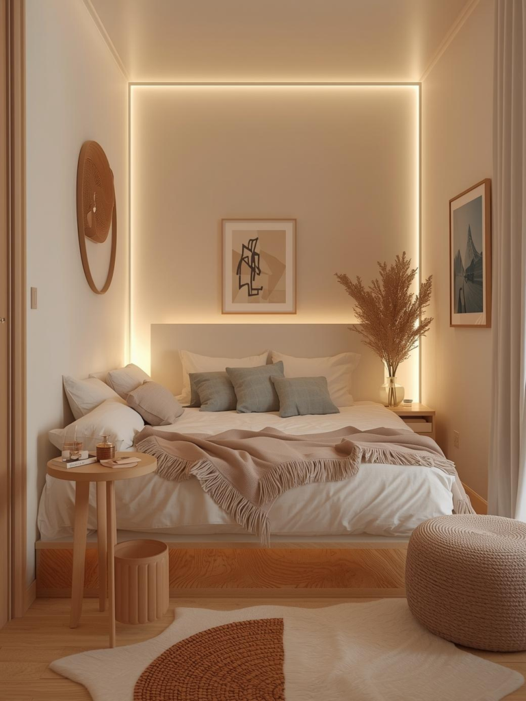 A small bedroom can feel cozy and comfortable with the right design choices. Light colors help open up the space while soft bedding and warm lighting create an inviting atmosphere. Keeping furniture minimal ensures the room does not feel overcrowded or cluttered.
