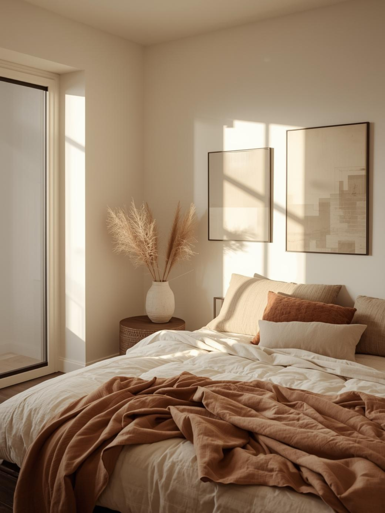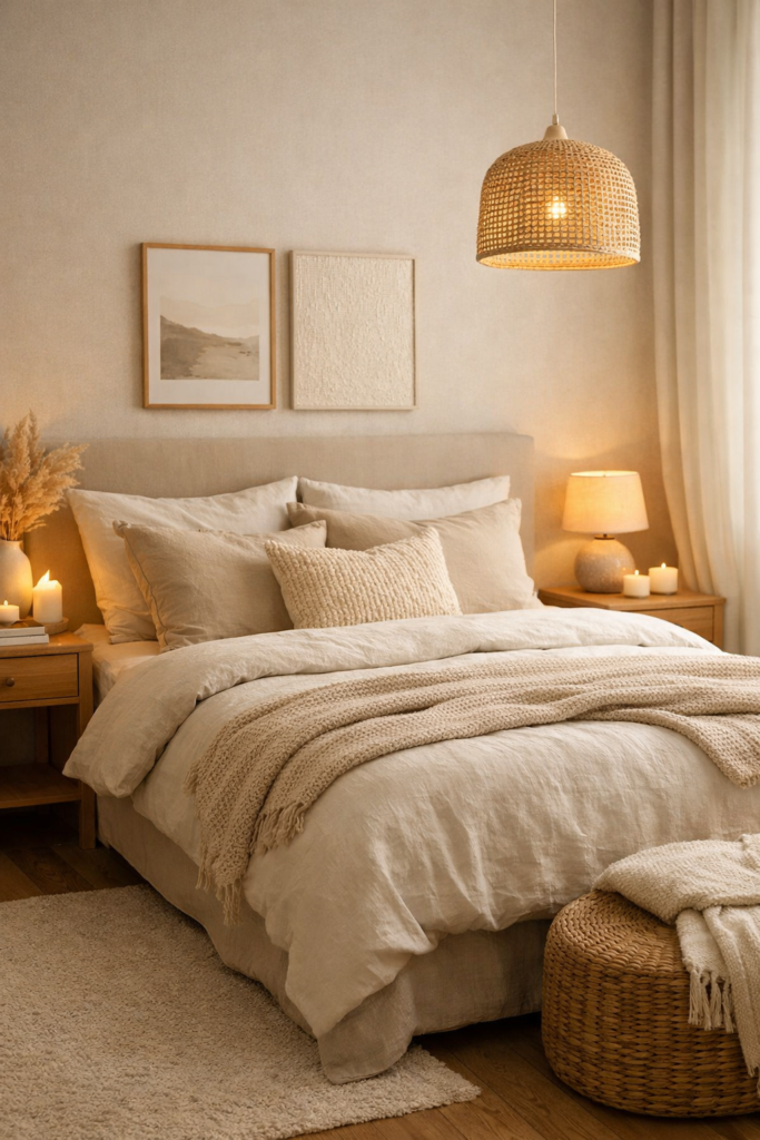 In 2026, neutral cozy bedrooms focus on texture rather than bold colors. Linen bedding, plush cushions, and soft throws add depth and warmth to the space. When layered correctly, these elements create a balanced look that feels comfortable yet stylish, making it highly appealing for Pinterest users.