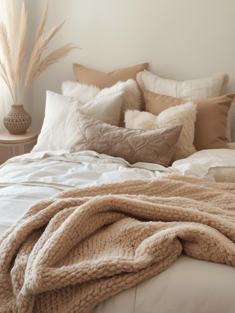 Throw blankets add instant warmth and coziness to any bedroom. Draped over the bed, they create a relaxed and inviting look that feels comfortable and lived-in.