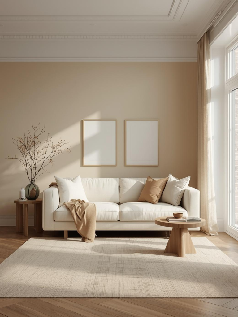 Choose low-maintenance plants like snake plants or pothos if you’re on a budget or new to plant care. Place them on shelves, side tables, or in corners to create a balanced look. The greenery contrasts beautifully with neutral decor, giving your room a high-end feel.