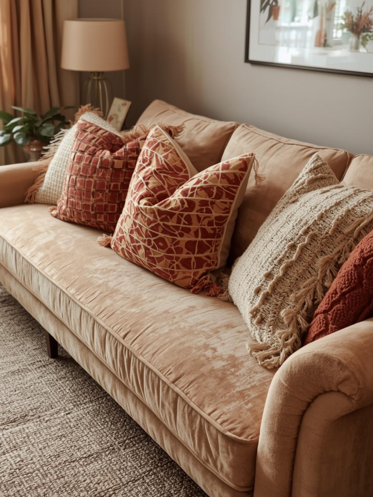 Throw pillows are an easy and affordable way to refresh your living room. Mixing textures and patterns adds depth and visual interest without requiring a major investment.