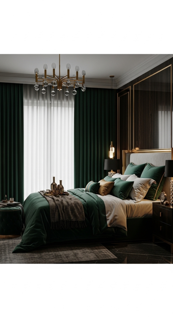 Velvet blackout curtains instantly bring richness into a bedroom. Their thick fabric naturally blocks more light while adding a luxurious texture that feels warm and inviting. Jewel tones like emerald, navy, and burgundy are especially popular for creating dramatic bedroom spaces.