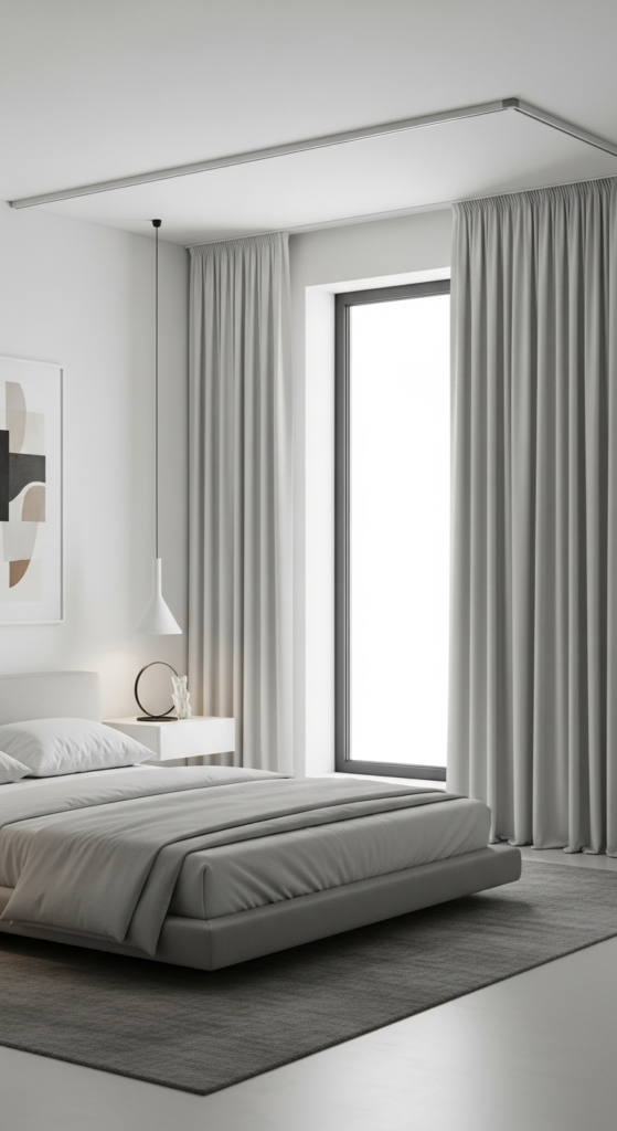 This style works beautifully in minimalist bedrooms. It makes the room feel cleaner and more expensive. In 2026, concealed tracks are becoming more common in high-end bedroom designs.