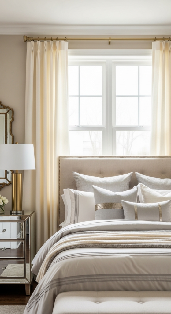 Small details can make curtains look custom and expensive. In 2026, homeowners are paying more attention to hardware finishes because they help simple curtains feel designer-inspired while keeping the bedroom soft and elegant.