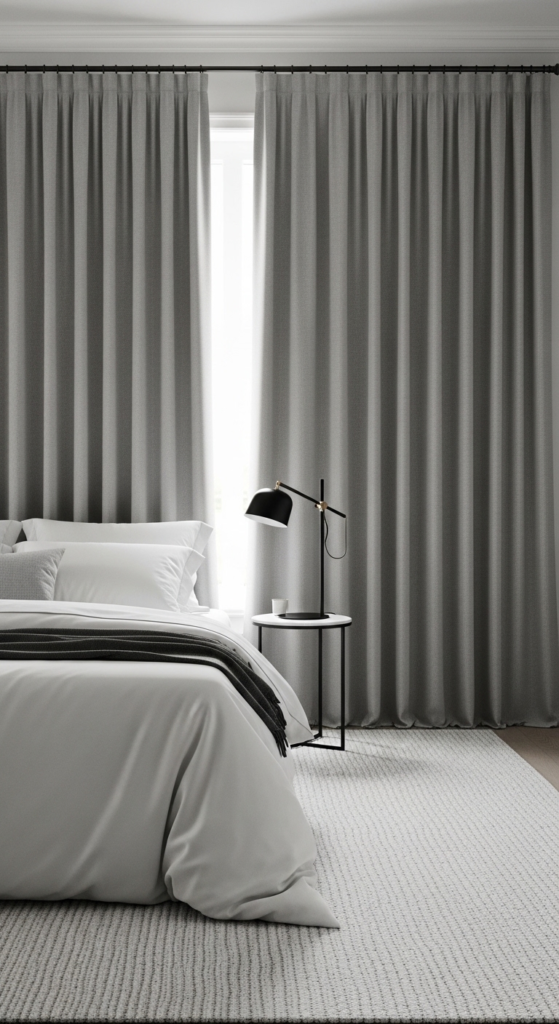 These curtains work especially well in minimalist bedrooms where clean lines matter. The full-length fabric adds softness and movement to the room without overwhelming the space. In 2026, many designers prefer neutral blackout curtains because they create a calm atmosphere while still offering excellent light control and privacy for better sleep.