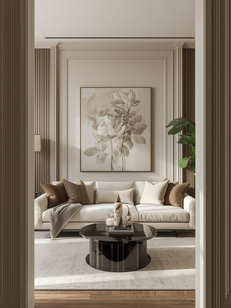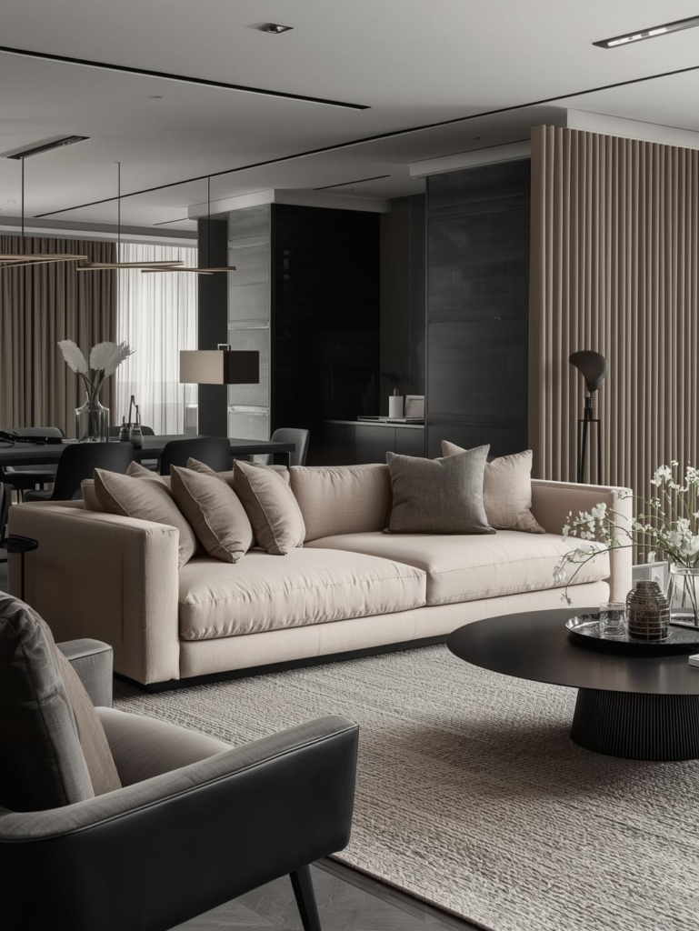 In 2026, this beige‑and‑black combination is trending because it offers depth without overpowering the room. The key is moderation—using black accents sparingly ensures the living room stays warm and inviting while still feeling modern and Pinterest‑worthy.