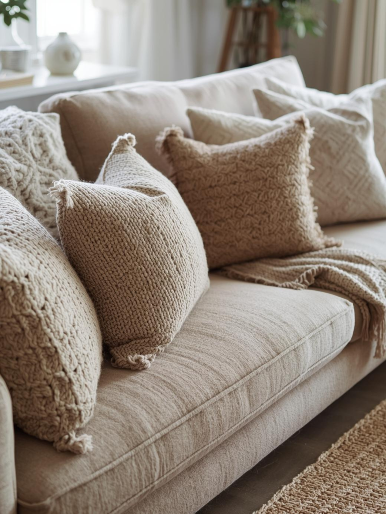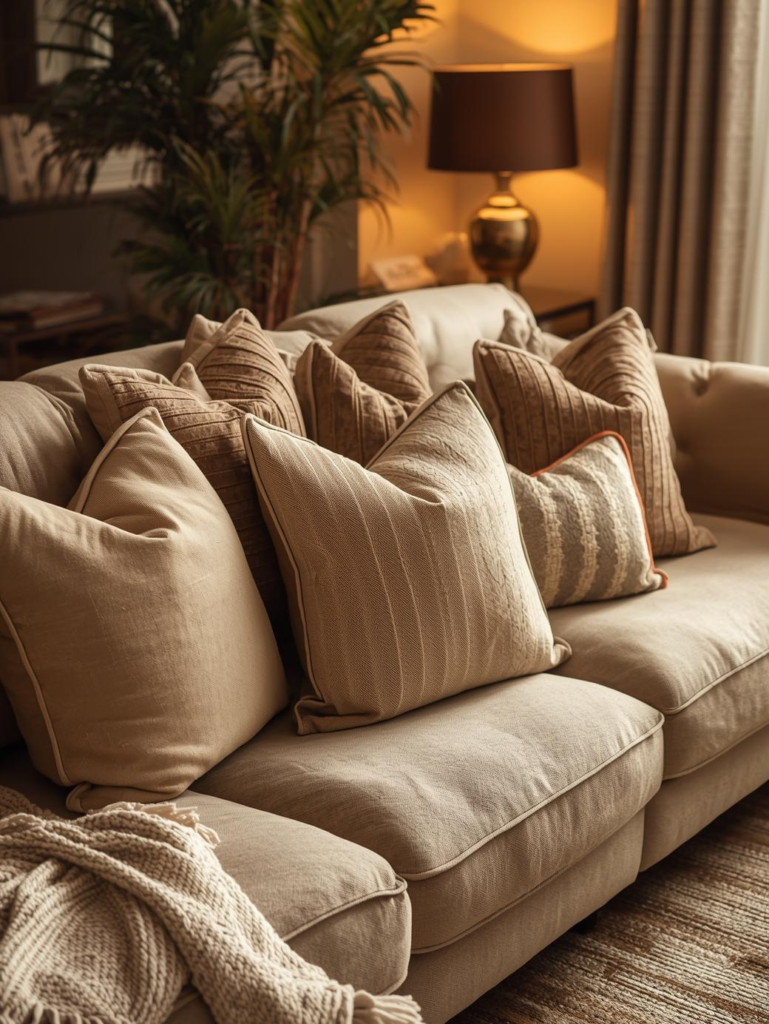11. Beige Sofa with Layered Cushions