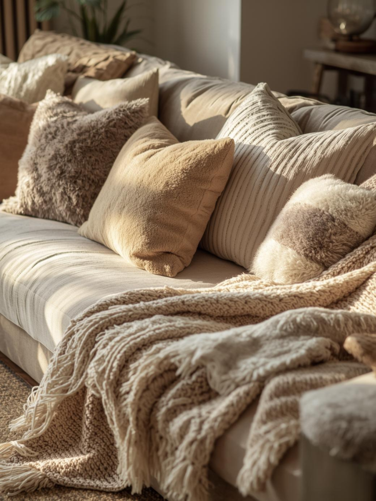 17. Beige Sofa with Cozy Throws